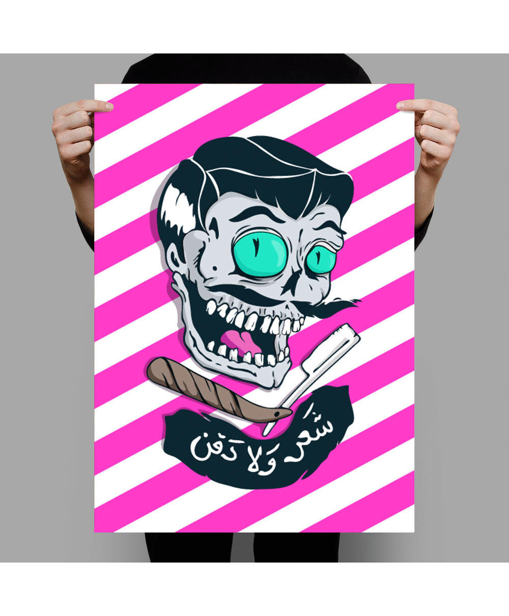 Illustration done for Mad Barbers poster reads in Arabic " Hair or beard cut ".